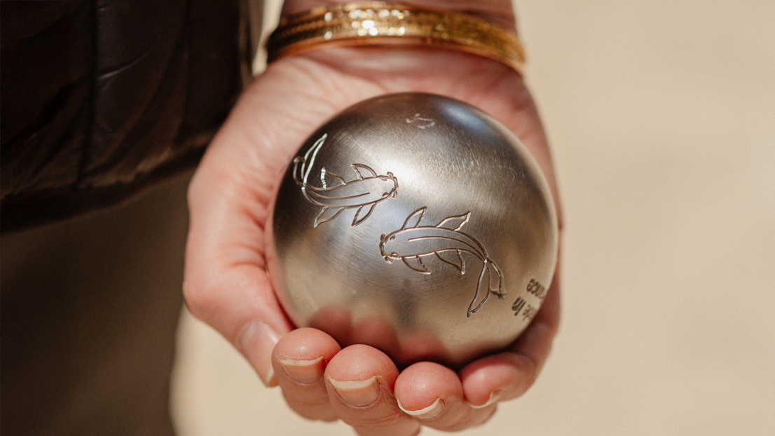 Ein Bouleplatz unter Platanen, herzliches Lachen, fröhliche Stimmen, einfache und präzise Bewegungen. Und im Mittelpunkt: eine Kugel, die anders ist als alle anderen.