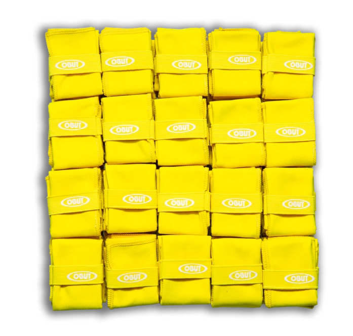 100 pañitos amarillos para limpiar las bolas de petanca muy absorbentes, compactos, resistentes y lavables a máquina.