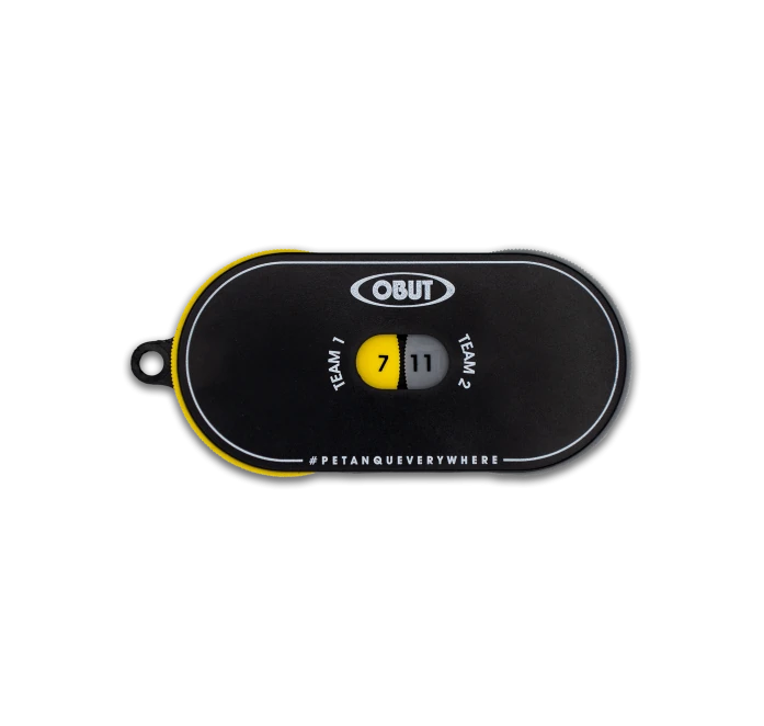 Dankzij 2 gearticuleerde draaiwieltjes, grijs en geel, kunt u de score gemakkelijk veranderen, de twee equipes identificeren, en de score permanent weergeven.